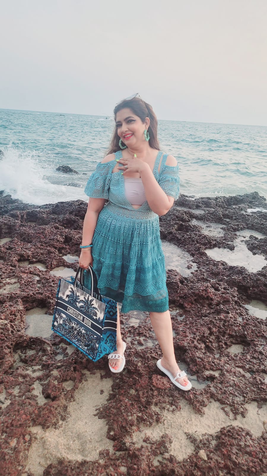 A beautifully ombre dyed resort dress showing various shades of sea with an unique silhouette which is perfect for all occasions. Lined at Bodice and made out of specially curtated 100% cotton Embroidered lace fabric or Schiffli GPO fabric to bring out the richness in this Style