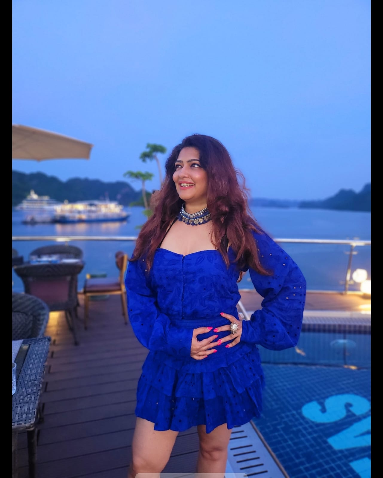 Indulge in the luxurious Electric Blue Co-ord Set- a sophisticated set showcasing a self-textured, sustainable mini skirt and full-sleeved top. Embrace boldness with stunning eyelet embroidery and a combination of smocked layers. Elevate your fashion game with this exquisite ensemble.