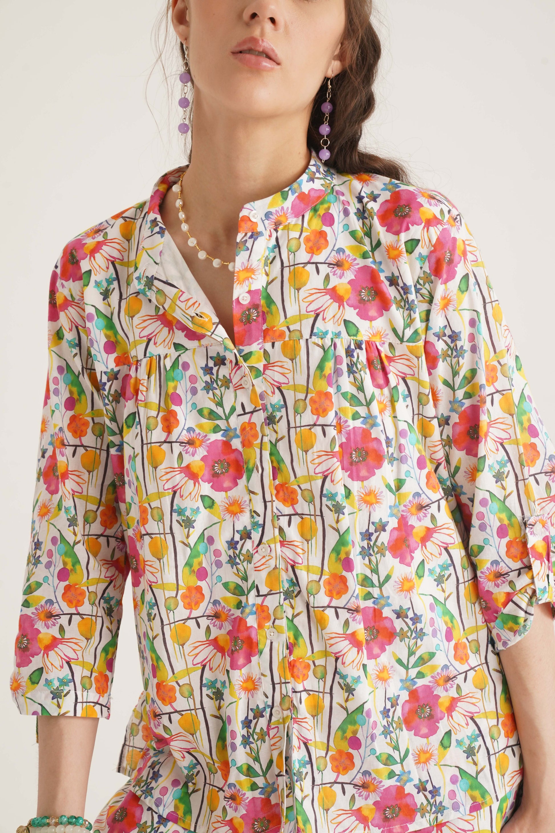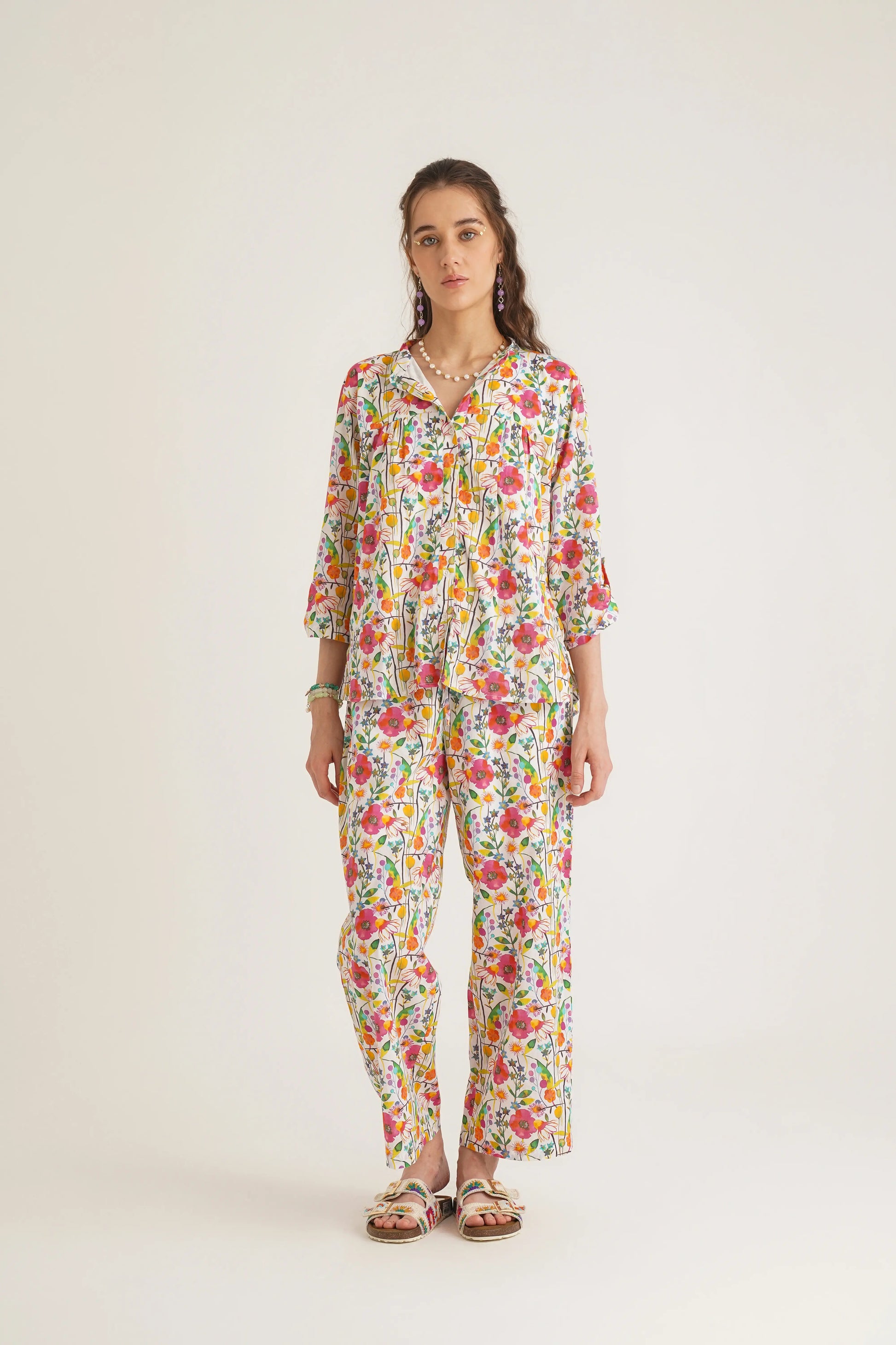 The Mette Co-ord Set showcases timeless elegance, crafted from 100% cotton and adorned with one of our most exquisite prints. The intricate detailing on the front adds a touch of sophistication, making this set both casual and chic. Its design effortlessly combines comfort with luxury, allowing the wearer to embody opulence in a relaxed and stylish manner. Perfect for those who appreciate understated elegance, the Mette Co-ord Set is a versatile addition to any wardrobe.