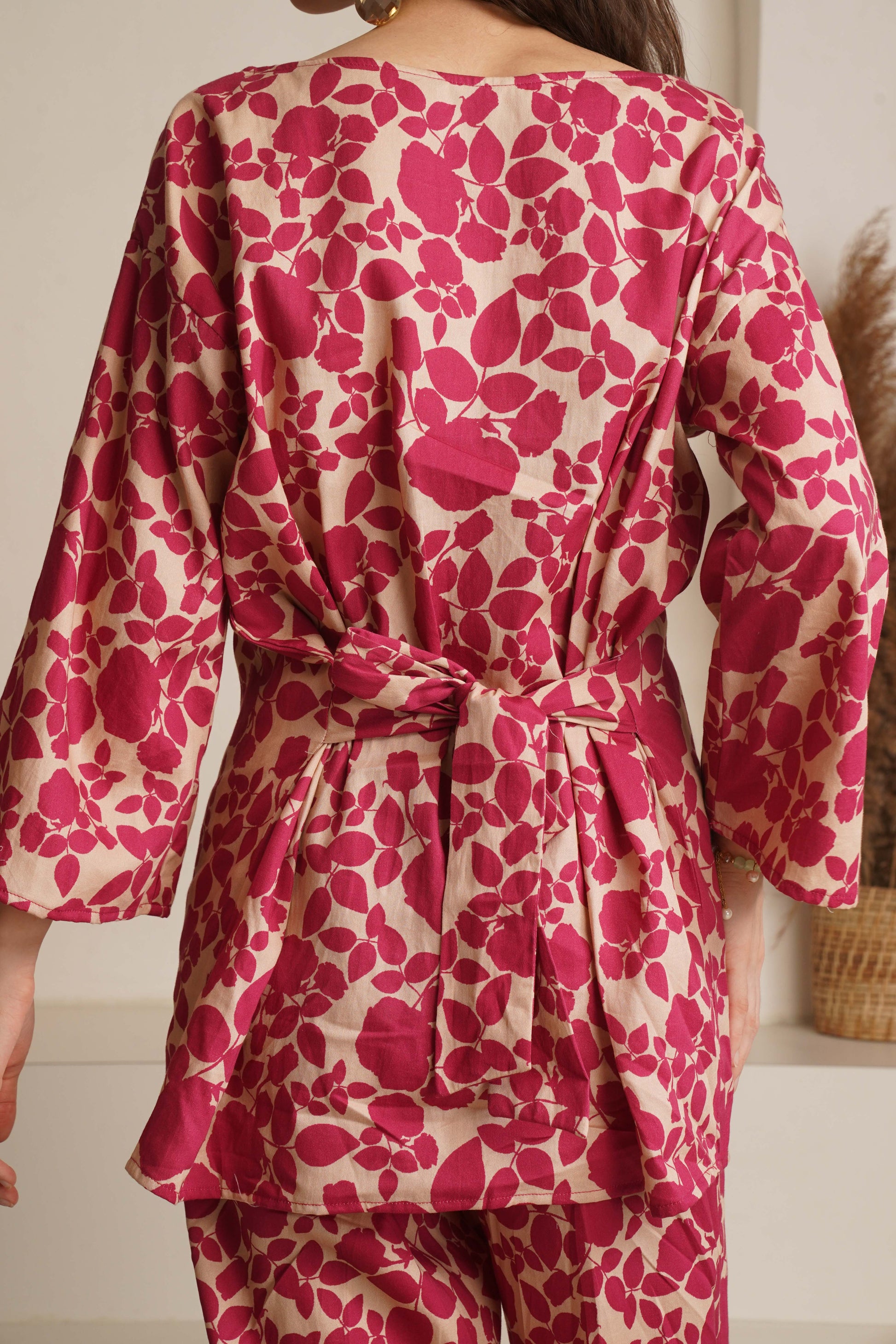 The Rikke Co-ord Set is the epitome of effortless elegance, crafted from fine cotton sateen that exudes luxury. Its vibrant print is enhanced by exquisite details, including a drop-down shoulder and a chic tie-down feature, paired with complementing pants. The relaxed fit ensures comfort while maintaining a polished, stylish appearance, making the Rikke Co-ord Set a versatile choice for any occasion. Whether dressed up or down, this set offers a sophisticated yet laid-back look that's perfect for all events.