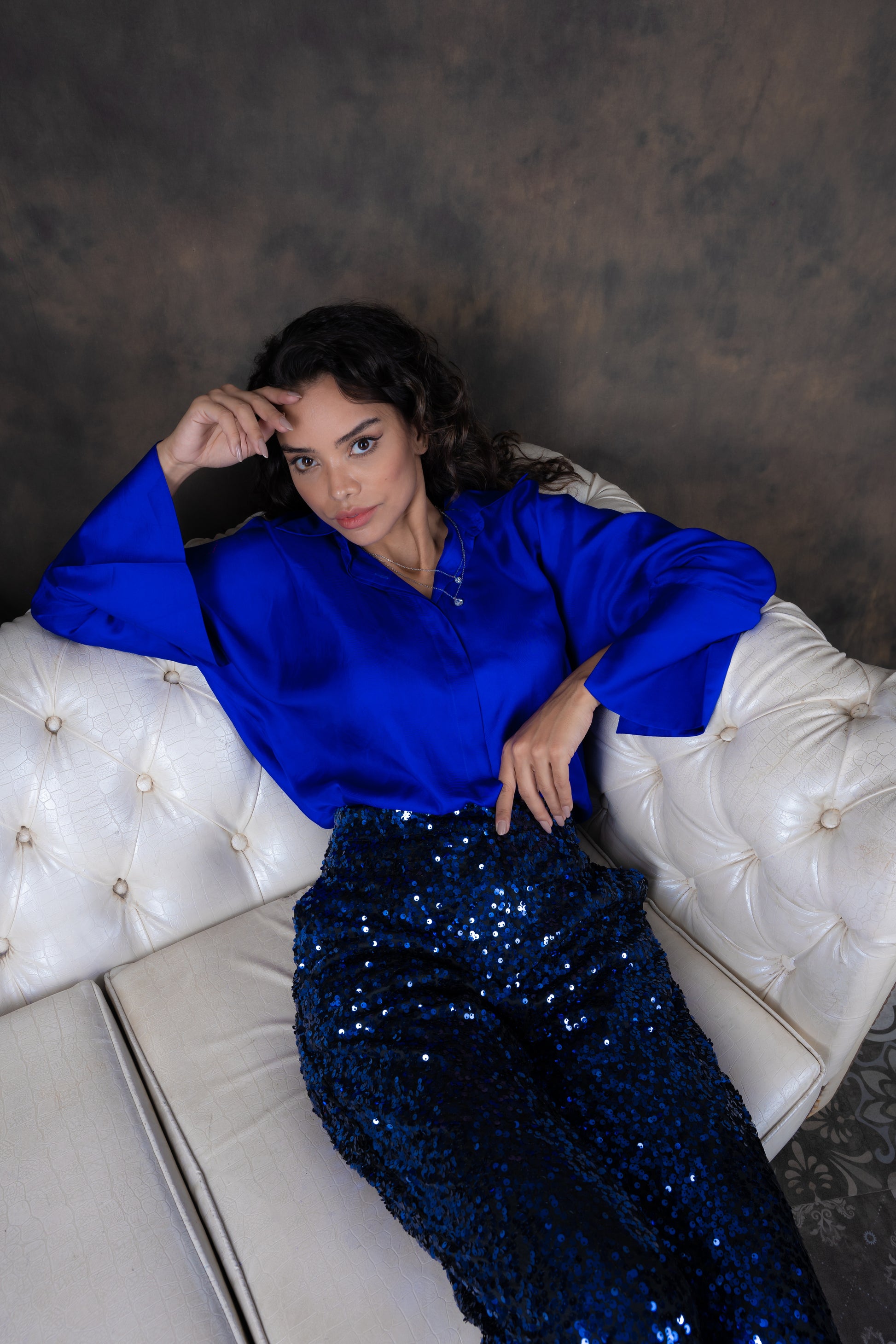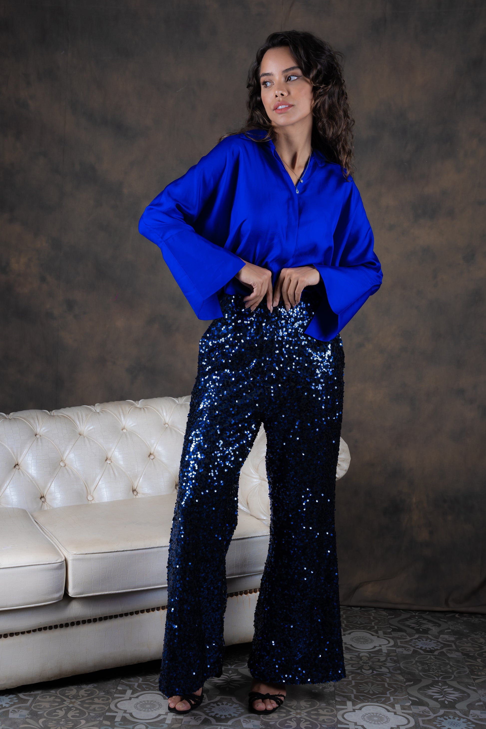 An all sequence body flattering disco pants, made with the finest strachable fabric. Can be worn to any party/event.