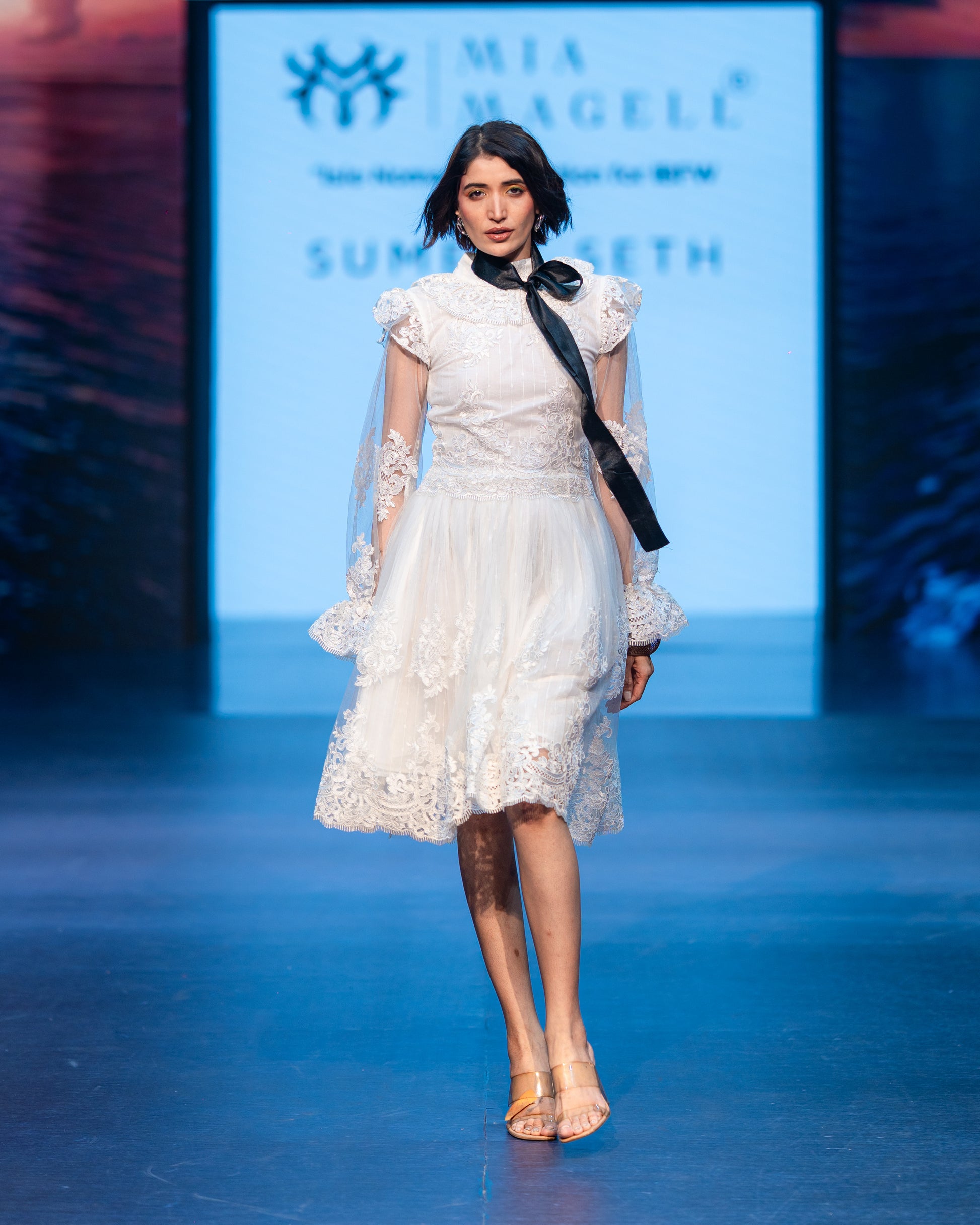 Meet the Vista Dress - a rare treasure crafted from exquisite French chandelier lace, renowned for its rich cord-thread embroidery and timeless artistry. This luxurious fabric, a true masterpiece in itself, sets the tone for a dress designed to captivate.