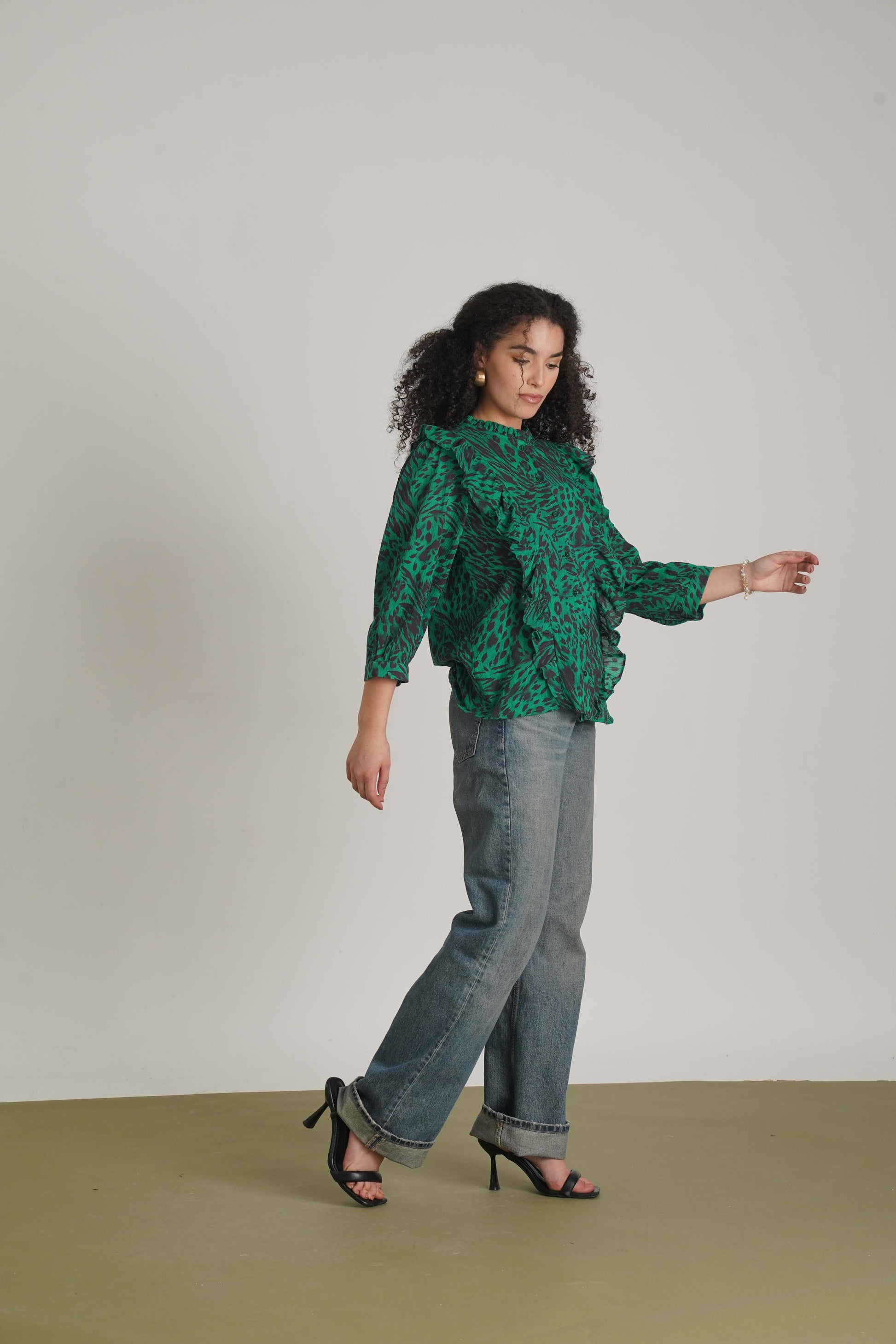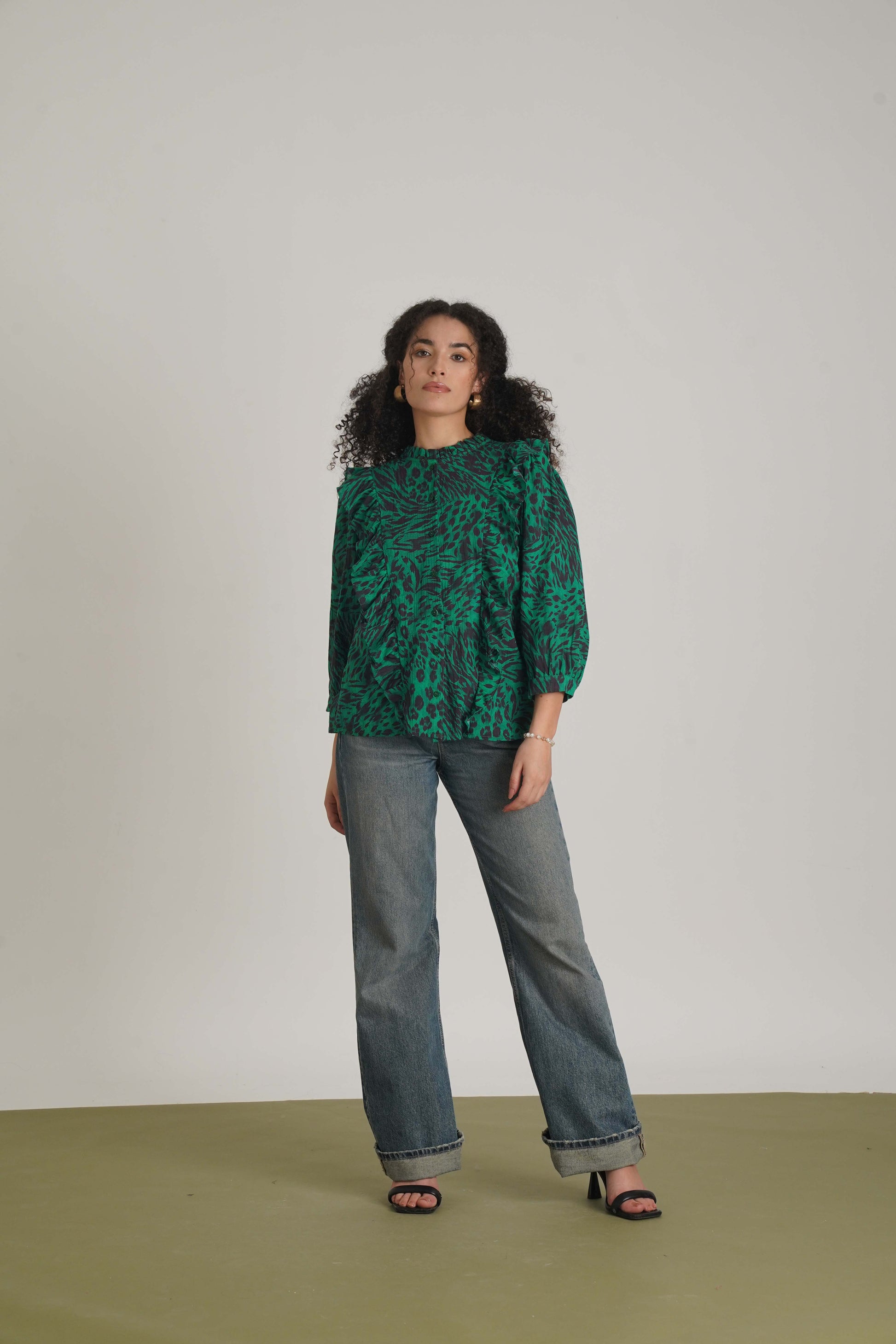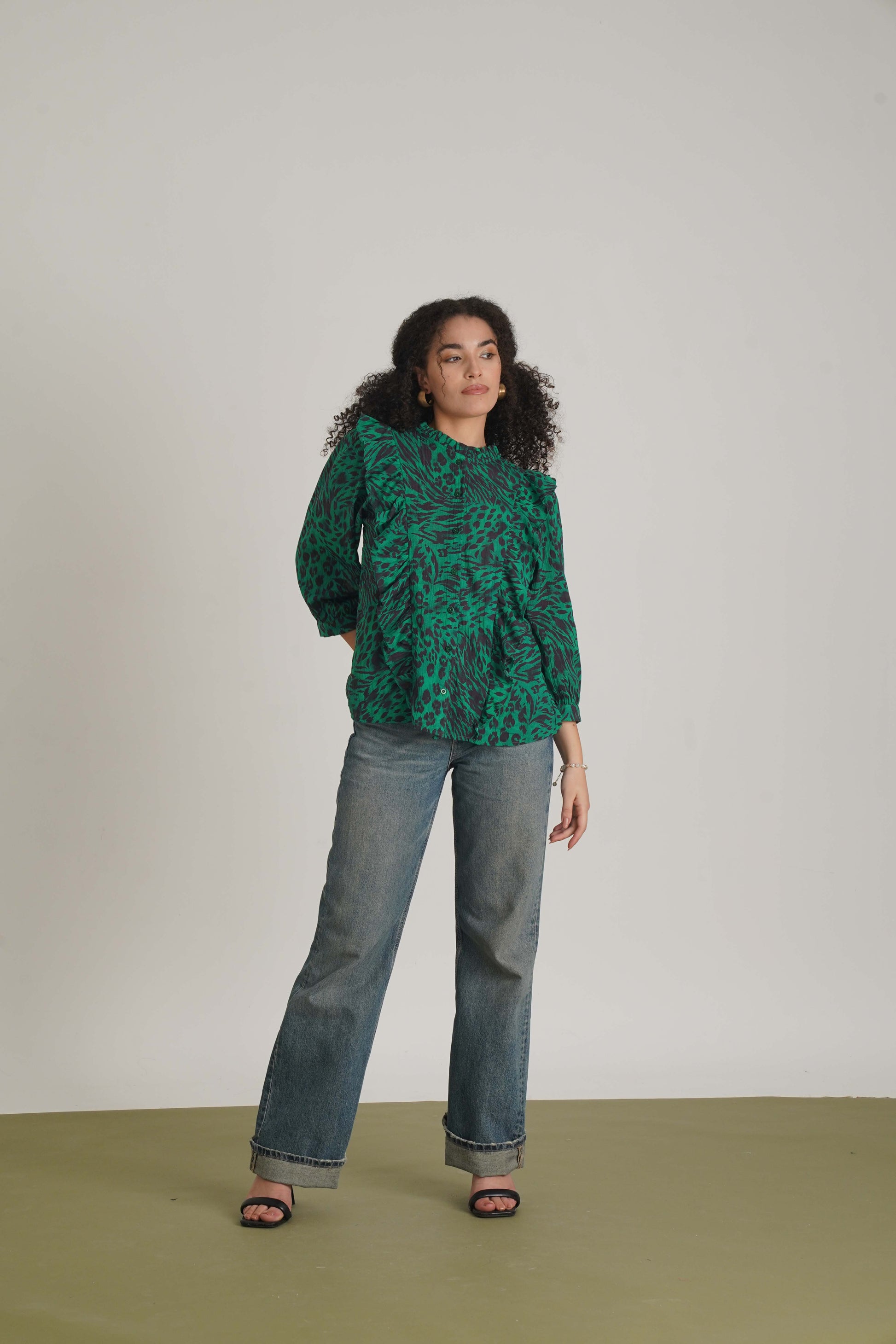 Introducing the Zegna Top, expertly crafted from 100% Viscose Crepe for a luxurious feel. This top features a buttoned front, frills on the placket with gathers, and a relaxed fit for a comfortable and stylish look. Elevate your wardrobe with its rich and sophisticated design.